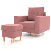 Křeslo s podnožkou Vaso losos pohodlné křeslo do obývacího pokoje ve skandinávském stylu měkký sedák vysoké dřevěné nohy