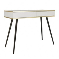 Luxusní bílá konzola se zásuvkami Stylový a elegantní toaletní stolek na vysokých černých nohách, doplněný zlatým lemováním