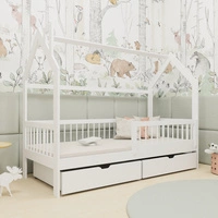 Dřevěná postel Pumba 80x190 cm bílá dětská postel z masivního borovicového dřeva dětský domeček postel s prostornými zásuvkami