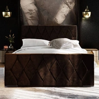 Čalouněná postel Mona 160x200 modrá s úložným boxem v moderním skandinávském stylu s prošívaným podhlavníkem s krystaly