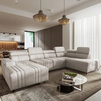 Rohová pohovka s funkcí spaní Castel VII béžová pravá stylová rohová pohovka s úložným prostorem na lůžkoviny a nastavitelnými opěrkami hlavy
