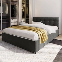 Čalouněná postel Mona 160x200 v grafitové barvě s úložným boxem v moderním skandinávském stylu s prošívanou opěrkou hlavy s krystaly