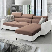 Rohová sedací souprava s funkcí spaní Savona světle hnědá / bílá pravá elegantní rohová sedací souprava s nastavitelnými opěrkami hlavy dekorativní prošívání