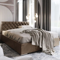 Čalouněná postel Bauru 160x200 béžová s kontejnerem v moderním skandinávském stylu s prošívaným podhlavníkem s krystaly