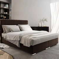Hnědá kontinentální postel Kingston 100x200 v moderním skandinávském stylu s čalouněným čelem s krystaly Postel s úložným boxem