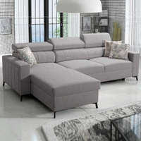 Rohová sedací souprava s funkcí spaní Belvi III šedá pravá pohodlná a elegantní rohová sedací souprava do obývacího pokoje s praktickým úložným prostorem na boku