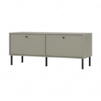 RTV skříň Kioto II 121 cm eukalyptus elegantní skříň s dvířky otevíranými dolů tlumené barvy černý kovový podstavec