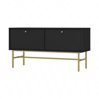 RTV skříň Kioto III 121 cm černá grafitová elegantní skříň s dvířky otevíranými dolů zlatý kovový rám
