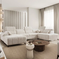 Rohová pohovka s funkcí spaní Tesalia IV Lux béžová levá stylová rohová pohovka s výsuvnou opěrkou nohou a posuvnou funkcí opěradla
