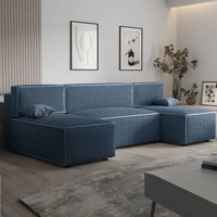 Rohová sedací souprava s funkcí spaní Brandon U modrý kontejner na lůžkoviny trojrozměrná látka s výraznými pruhy