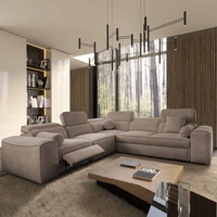 Rohová sedací souprava s funkcí spaní Tesalia V šedá pravá komfortní rohová sedací souprava se zásuvkou a funkcí posuvného opěradla