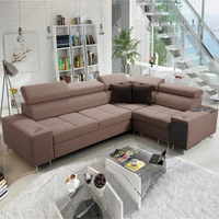 Rohová sedací souprava s funkcí spaní Cetara IV béžová pravý roh stylový design s posuvnými opěradly dvě nádoby na lůžkoviny