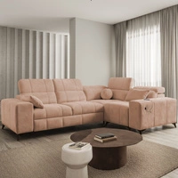 Rohová sedací souprava s funkcí spaní Nausa III světle hnědá levá sametová stylová pohodlná rohová sedací souprava nastavitelné opěrky hlavy nádoba na lůžkoviny
