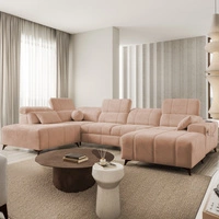 Rohová sedací souprava s funkcí spaní Penejos IV Lux losos levá stylová rohová sedací souprava s pohodlnou výsuvnou opěrkou nohou