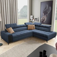 Rohová sedací souprava s funkcí spaní Bolmso VII modrá pravá elegantní rohová sedací souprava do obývacího pokoje se zásuvkou a kontejnerem na lůžkoviny