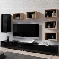 Sestava nábytku Clovis černá / dub evokuje netradiční design tlačit na otevření systému skleněných čel lamel v interiéru nástěnné skříňky