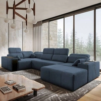 Rohová sedací souprava s funkcí spaní Tesalia IV modrá pravá komfortní rohová sedací souprava do obývacího pokoje s inovativní funkcí posuvného opěradla