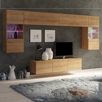 Nábytková sestava Apallo brandy dub castello moderní designová nábytková sestava na kovových nohách nástěnná skříňka do obývacího pokoje vysoké okraje stolových desek