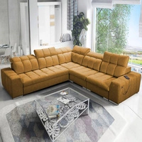 Rohová sedací souprava s funkcí spaní Tesalia XII medová levá moderní design pohodlný posuvný opěrák zásuvka v boční části nábytku