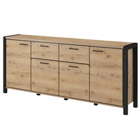 Vellore 97 cm vysoká komoda béžová elegantní komoda se sníženou horní deskou v dubovém odstínu kovové nohy bez úchytek čela