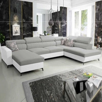 Rohová sedací souprava s funkcí spaní Savona šedý jasan / bílá pravá elegantní rohová sedací souprava s nastavitelnými opěrkami hlavy dekorativní prošívání
