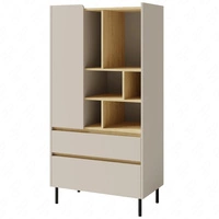 Knihovna se zásuvkami Paguro 80 cm pískově béžová / olejovaný dub elegantní design stabilní vysoké nohy knihovna s dvířky a zásuvkami