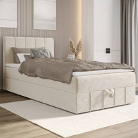 Kontinentální postel Casey 90x200 béžová v moderním skandinávském stylu s čalouněným čelem postele s úložným boxem