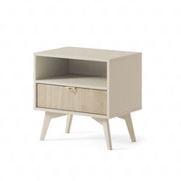 Noční stolek Kioto I béžový se zásuvkami ideální skříňka do ložnice jemné úchyty kovové nohy