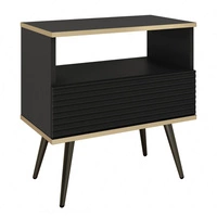 Luxusní noční stolek se zásuvkou černý elegantní design skříňka se zlatým lemováním skříňka s rýhovaným čelem černé vysoké nohy