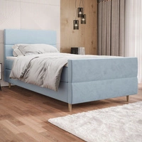 Modrá kontinentální postel Benet 100x200 v moderním skandinávském stylu s čalouněným čelem a nohama postele s úložným boxem