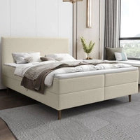Kontinentální postel Totti 140x200 béžová stylová postel s úložným prostorem na lůžkoviny trojrozměrná tkanina s výraznými pruhy