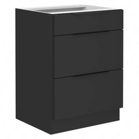 Stojící kuchyňská skříňka se zásuvkami černá 60 D 3S BB kovové hrany úchytek skříňka odolná proti vlhkosti a poškození