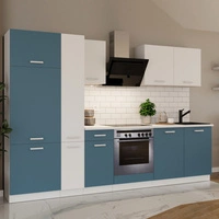 Kuchyňská sestava Toni 290 cm bílá / mořská s pracovní deskou vypadá skvěle v moderních interiérech