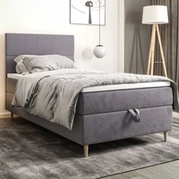 Kontinentální postel Bing 100x200 béžová v moderním skandinávském stylu s čalouněným čelem postele s úložným boxem
