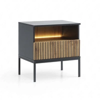 Noční skříňka se zásuvkou Amma černá / dub wotan vkusný drážkovaný dekor LED osvětlení ideální skříňka do ložnice