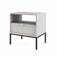 Lovro noční stolek se zásuvkou bílý vkusný drážkovaný dekor ideální skříňka do ložnice zlatá hrana rukojeť