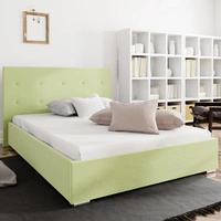 Čalouněná postel Alford 140x200 lahvově zelená s úložným prostorem v moderním skandinávském stylu s prošívaným čelem a nohama s povrchovou úpravou krystaly