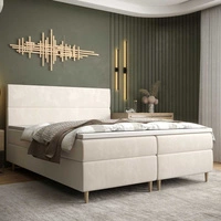 Kontinentální postel Bing 120x200 béžová v moderním skandinávském stylu s čalouněným čelem postele s úložným boxem
