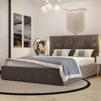 Čalouněná postel Hestia 160x200 s šedým úložným boxem v moderním skandinávském stylu s pohodlným čelem