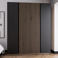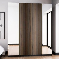 Šatní skříň se zrcadlem Kastano XIV 200 cm černá / dub evoke elegantní design šatní skříň dveře zdobené černými lamelami šatní skříň do předsíně