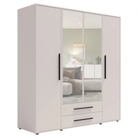 Zrcadlová šatní skříň Maxione 198 cm béžová prostorná šatní skříň do ložnice, pokoje pro mladé nebo předsíně obohacená o zásuvky