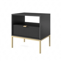 Lovro noční stolek se zásuvkou černý vkusný drážkovaný dekor ideální skříňka do ložnice zlaté kovové doplňky