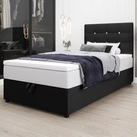 Černá kontinentální postel Kingston 100x200 v moderním skandinávském stylu s čalouněným podhlavníkem s krystaly Postel s úložným boxem