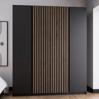 Zrcadlová šatní skříň Kastano XIV 200 cm černá elegantní design šatní skříně dveře zdobené lamelami v dubu evorke šatní skříň do předsíně