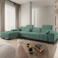 Rohová pohovka s funkcí spaní Penejos XI zelená levá pohodlná rohová pohovka s nastavitelnými opěrkami hlavy a dvěma přihrádkami na lůžkoviny