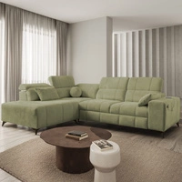 Penejos XII Lux olivová olivová levá rohová pohovka s funkcí spaní Stylová rozkládací pohovka s pohodlnou výsuvnou opěrkou nohou