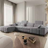 Rohová sedací souprava s funkcí spaní Penejos XI Lux šedá levostranná stylová rohová sedací souprava s pohodlným výsuvným podnožníkem