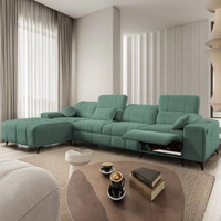 Rohová pohovka s funkcí spaní Penejos XI zelená levá pohodlná rohová pohovka s nastavitelnými opěrkami hlavy a dvěma přihrádkami na lůžkoviny