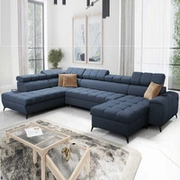 Rohová pohovka s funkcí spaní Penejos XI modrá pravá pohodlná rohová pohovka s nastavitelnými opěrkami hlavy a dvěma nádobami na lůžkoviny
