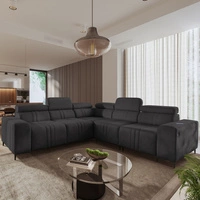 Rohová sedací souprava s funkcí spaní Castel III grafitová pravá rohová sedací souprava se dvěma lůžkovinami nastavitelné opěrky hlavy